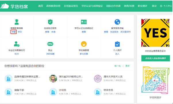 1、登錄中國高等教育學(xué)生信息網(wǎng)www.chsi.com.cn