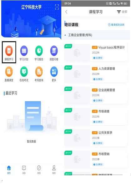 1、登錄后,進入主頁面,找到學習,然后選擇課程學習。