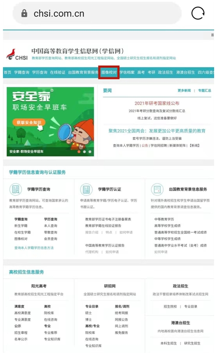 1、打開手機(jī)瀏覽器,登錄中國高等教育學(xué)生信息網(wǎng)(www.chsi.com.cn
