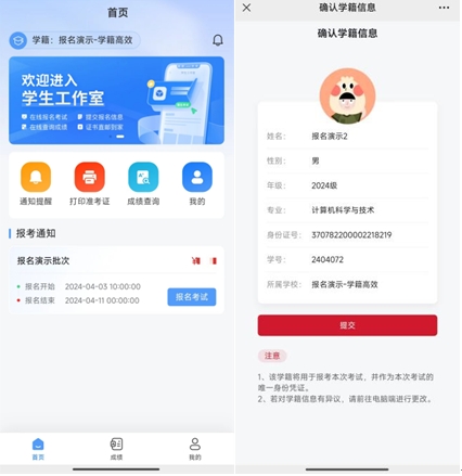 3、點擊報名,進行身份信息核對